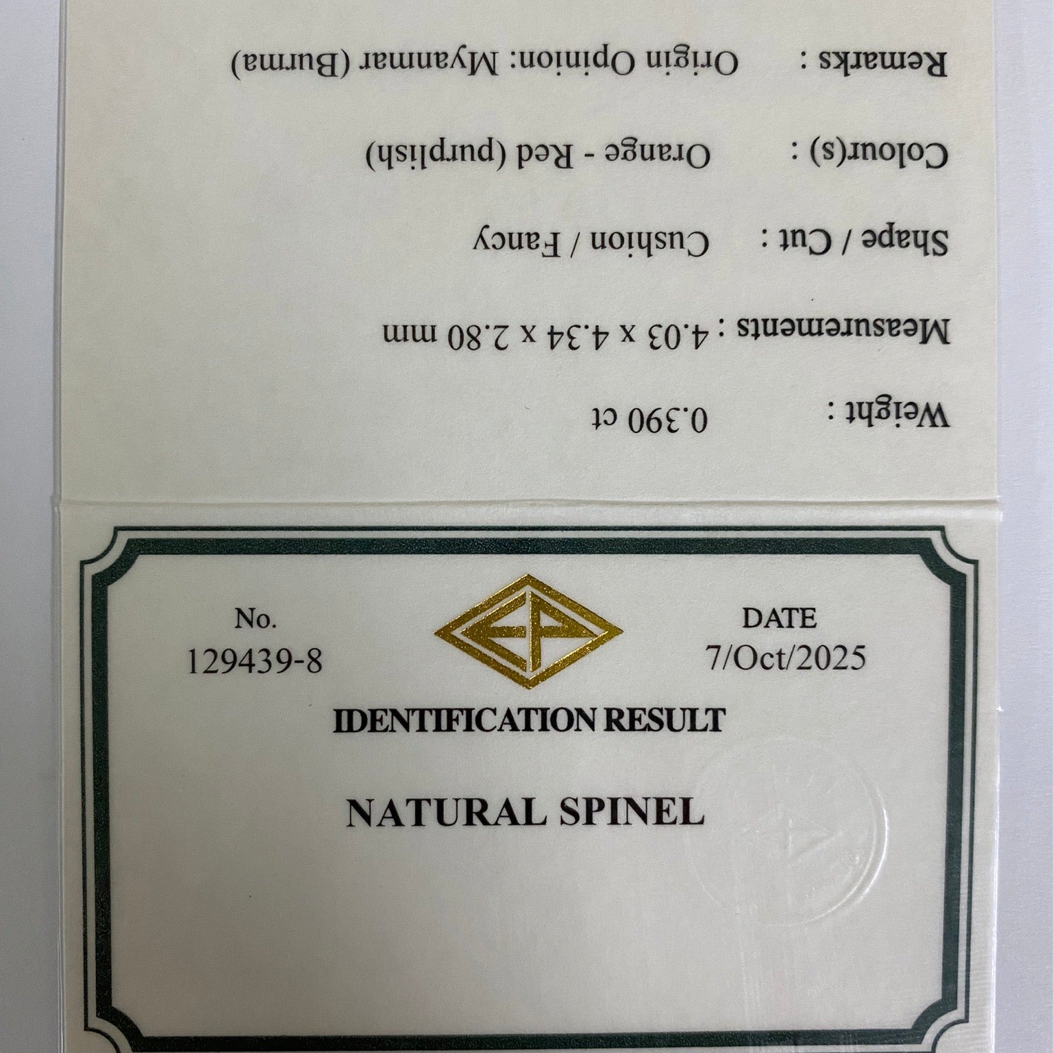 Orangey Red Spinel 0.390ct / Burma