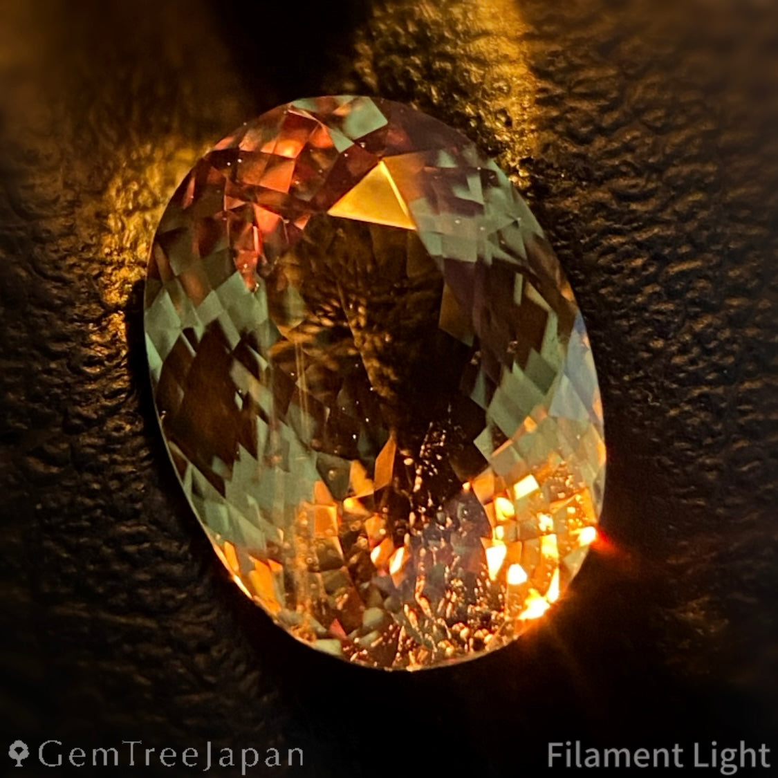 フィラメントライト照射による変化は微弱ですが、ライトを当てるとゴールドの煌めきの中にほんのりピンキッシュなオレンジの煌めきが現れます。