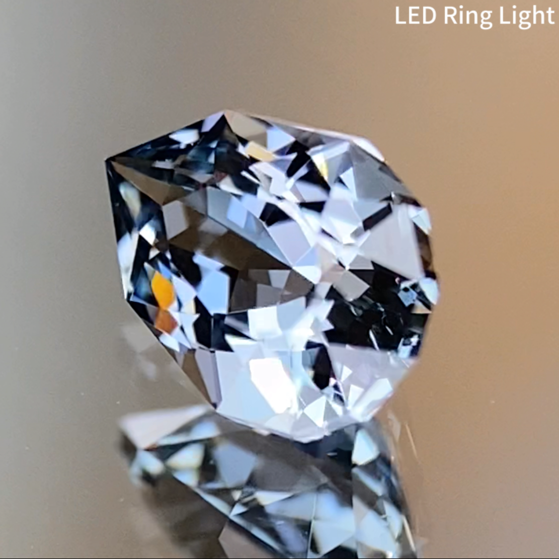 原石から輪郭を細かく縁取ったファンシーペアシェイプに仕上げ、フラワーカットによる細やかな煌めきが溢れます。
