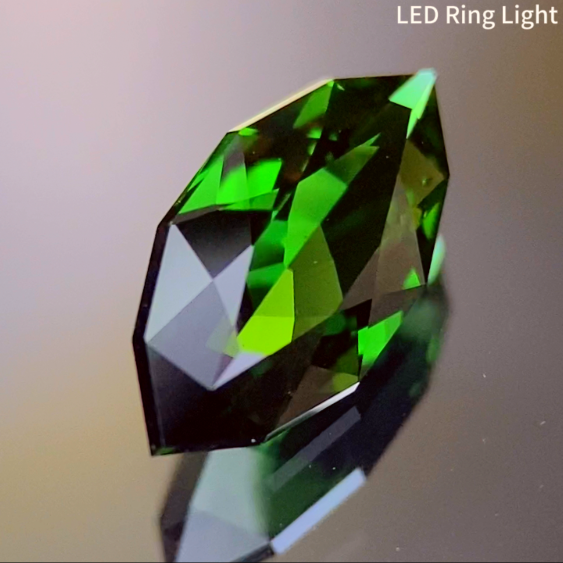 プロポーション的に厚みのないタイプで、軽く抜け感はあるものの細やかなフラワーカットによってテリも少し感じられますし、深みの強いクロムトルマリンに明るさを与えています。