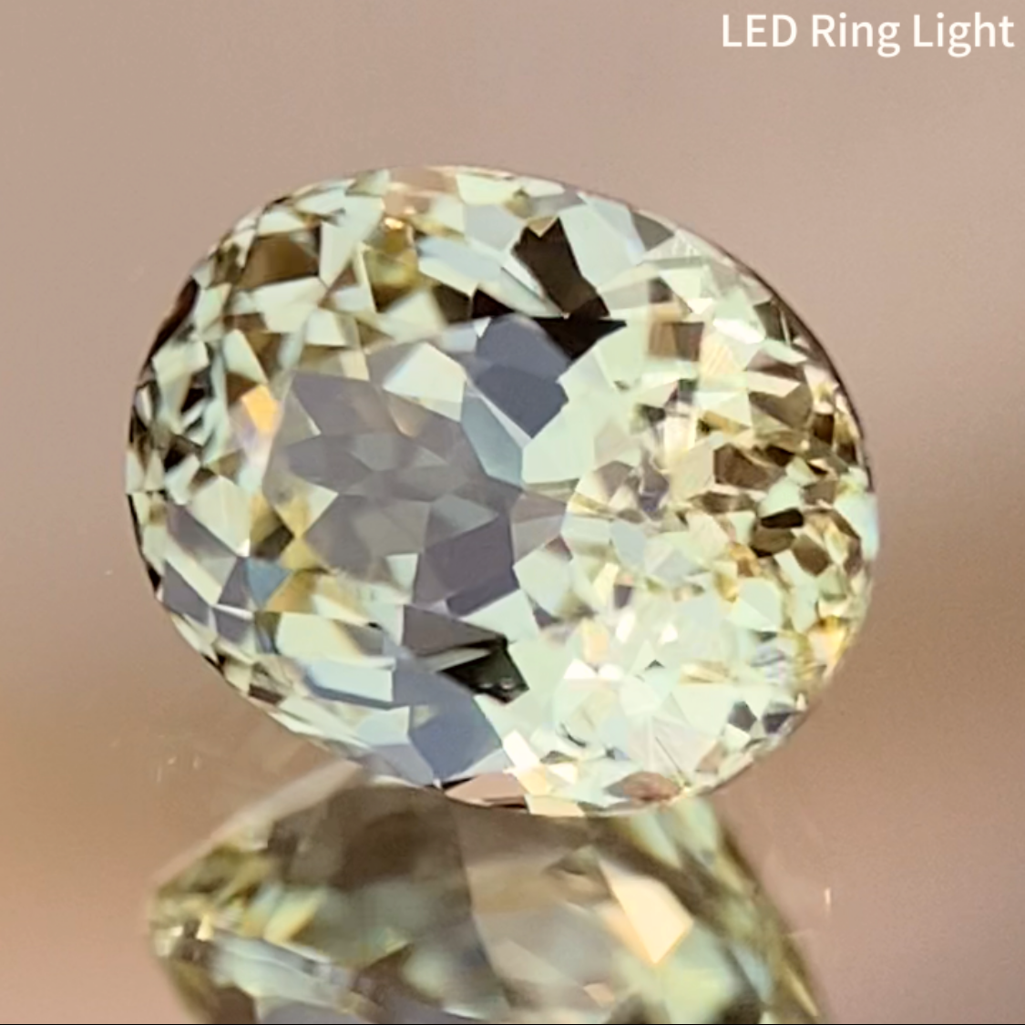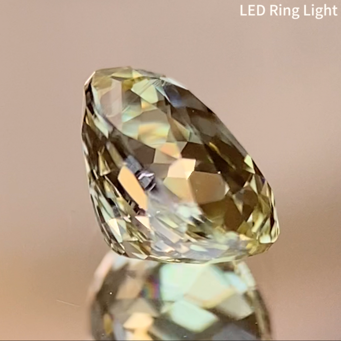 明るいグリニッシュイエローのタンザニア産クリソベリルで、原石から端正なオーバルに仕上げた作品です。