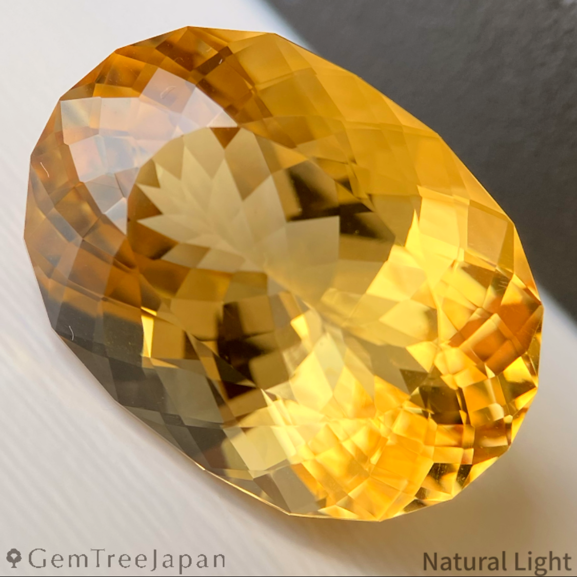 華やかなゴールドのシトリンで、輪郭を細かく縁取ったロングオーバルに仕上げた22ctアップの巨石作品です。