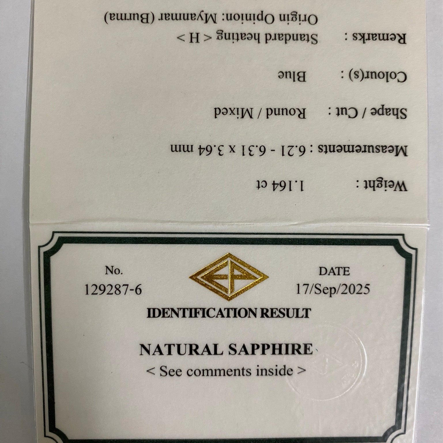 Cornflower Blue Sapphire 1.164ct / Burma