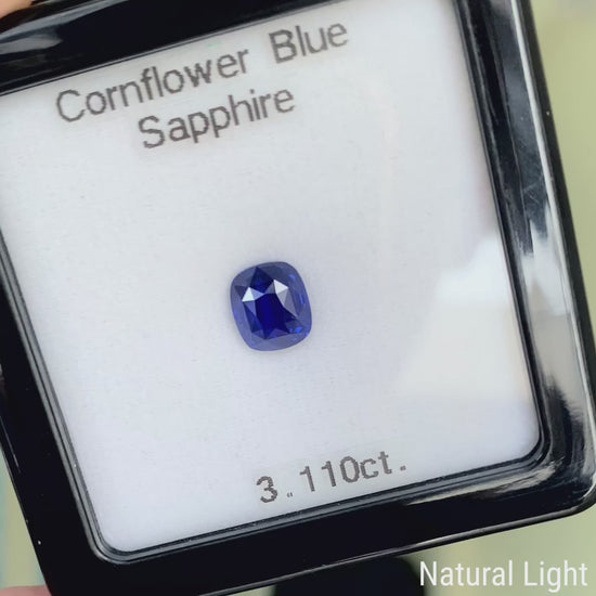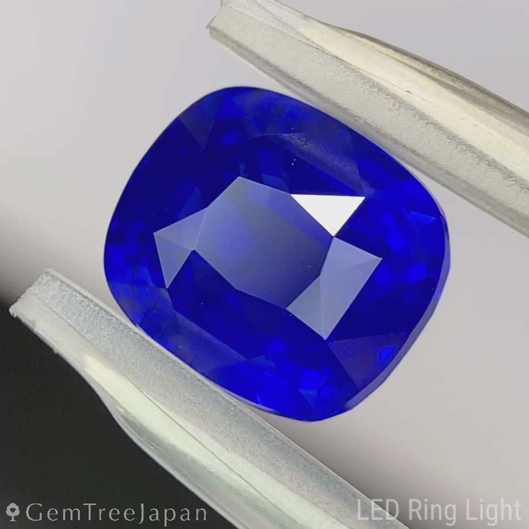 特有のベルベッティな質感に深く非常鮮やかなコーンフラワーブルーが溜まり柔らかな煌めきに溢れる3ctアップ。