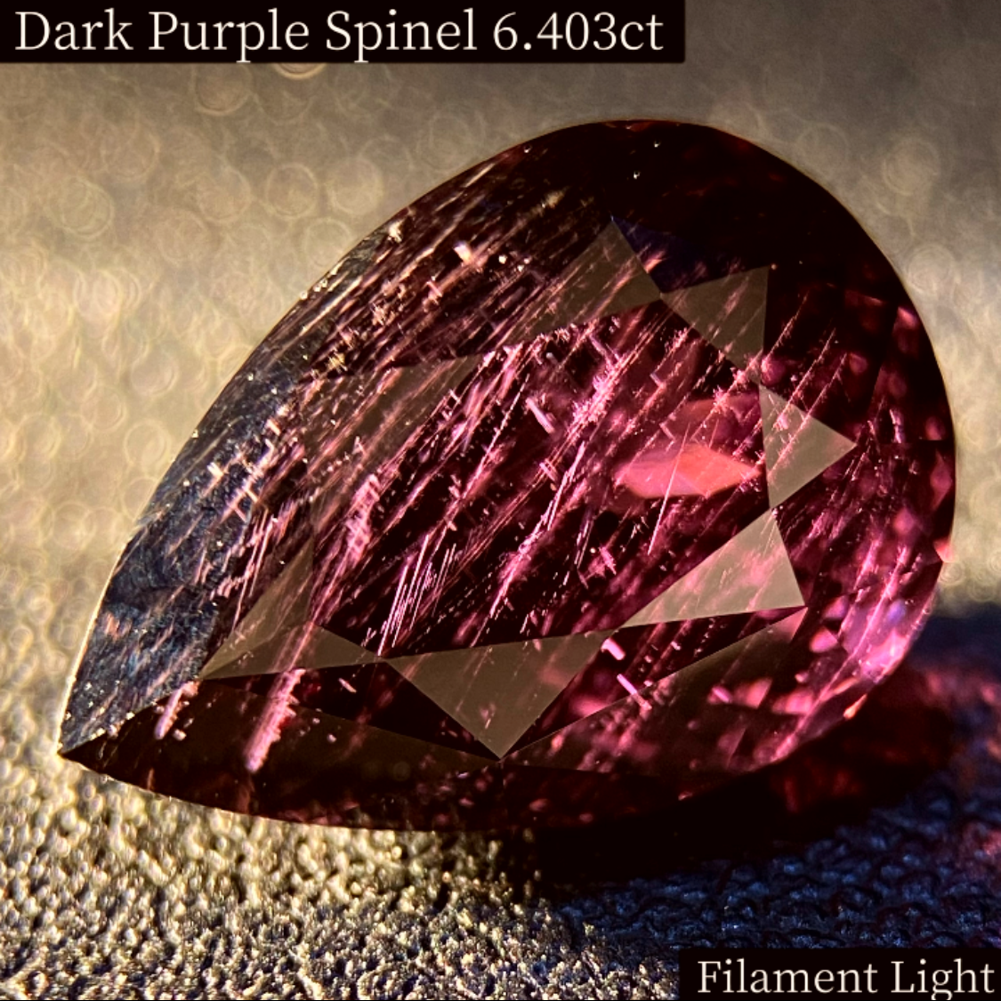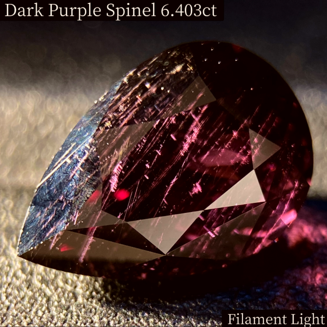一見真っ黒に見えるスピネルですが、光を当てたり、ピンセットで見てみると濃厚なパープルを感じるユニークなルースです。