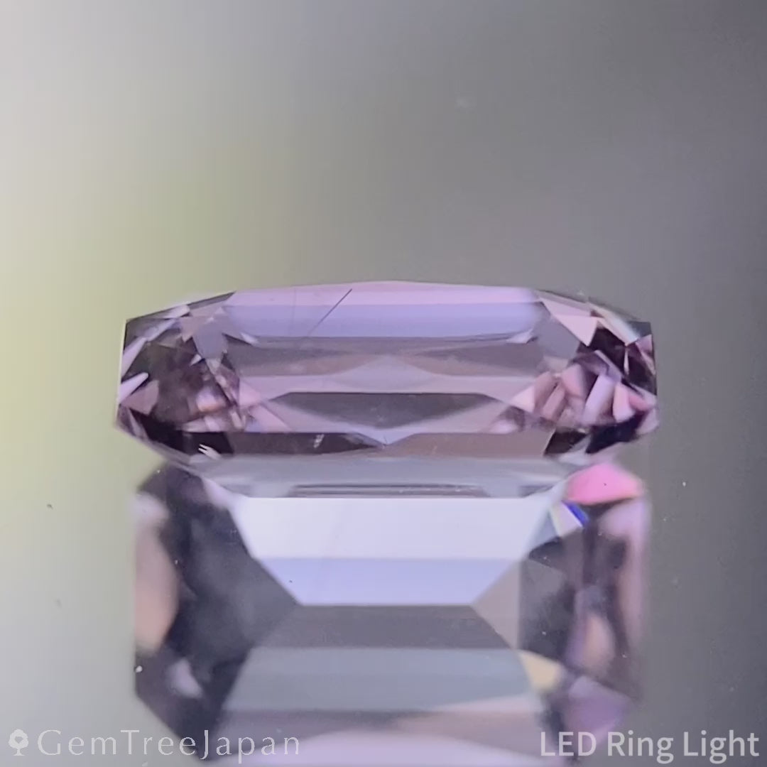 ダイアスポアは多色性のある宝石で、この作品も偏向板で観察すると、グレイッシュピンクとパープリッシュピンクの二色が見られます。