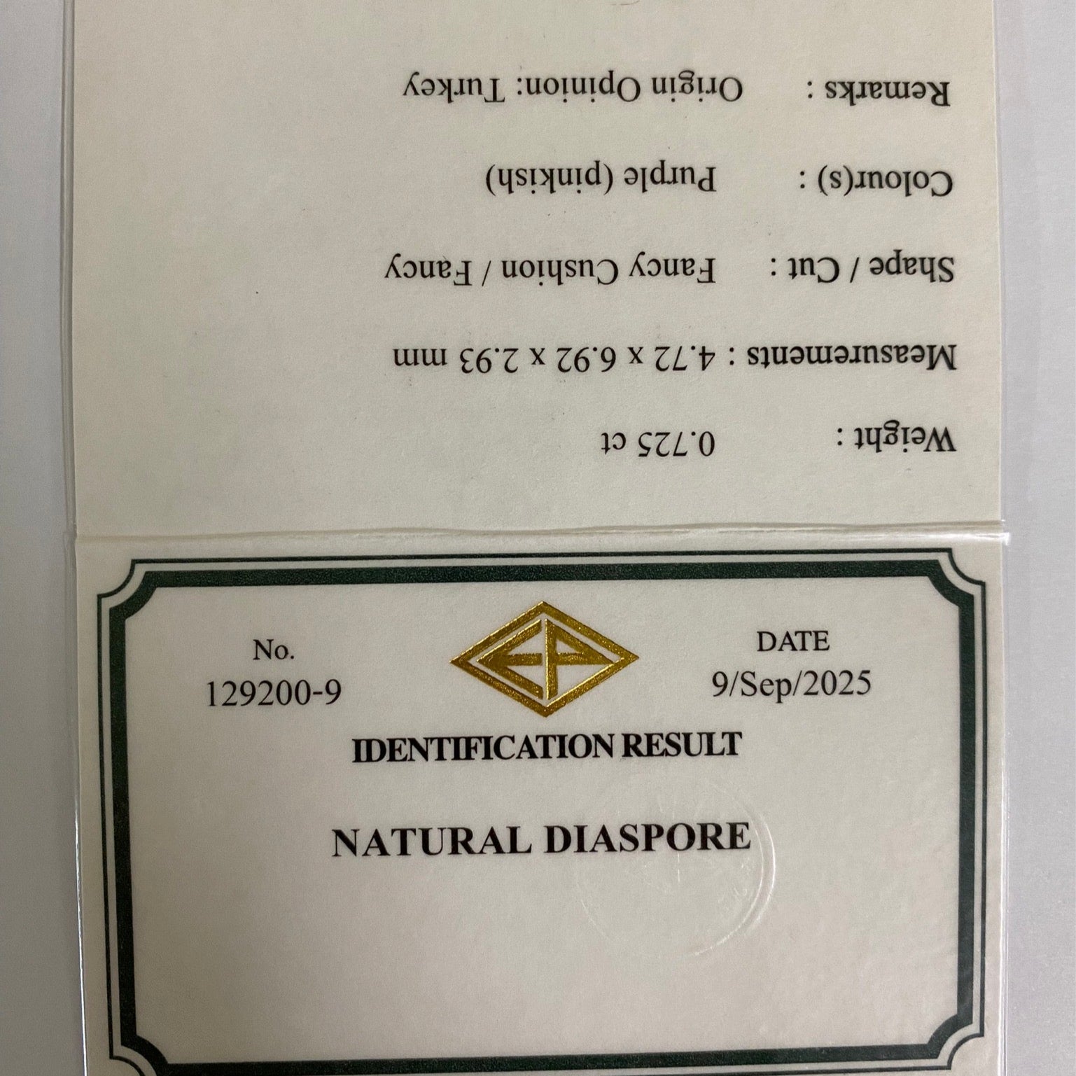 ダイアスポアらしい一言で言い表せない上品なピンクの一石で、パープリッシュピンクとベビーピンクのが溶け合いながら煌めく一石です。