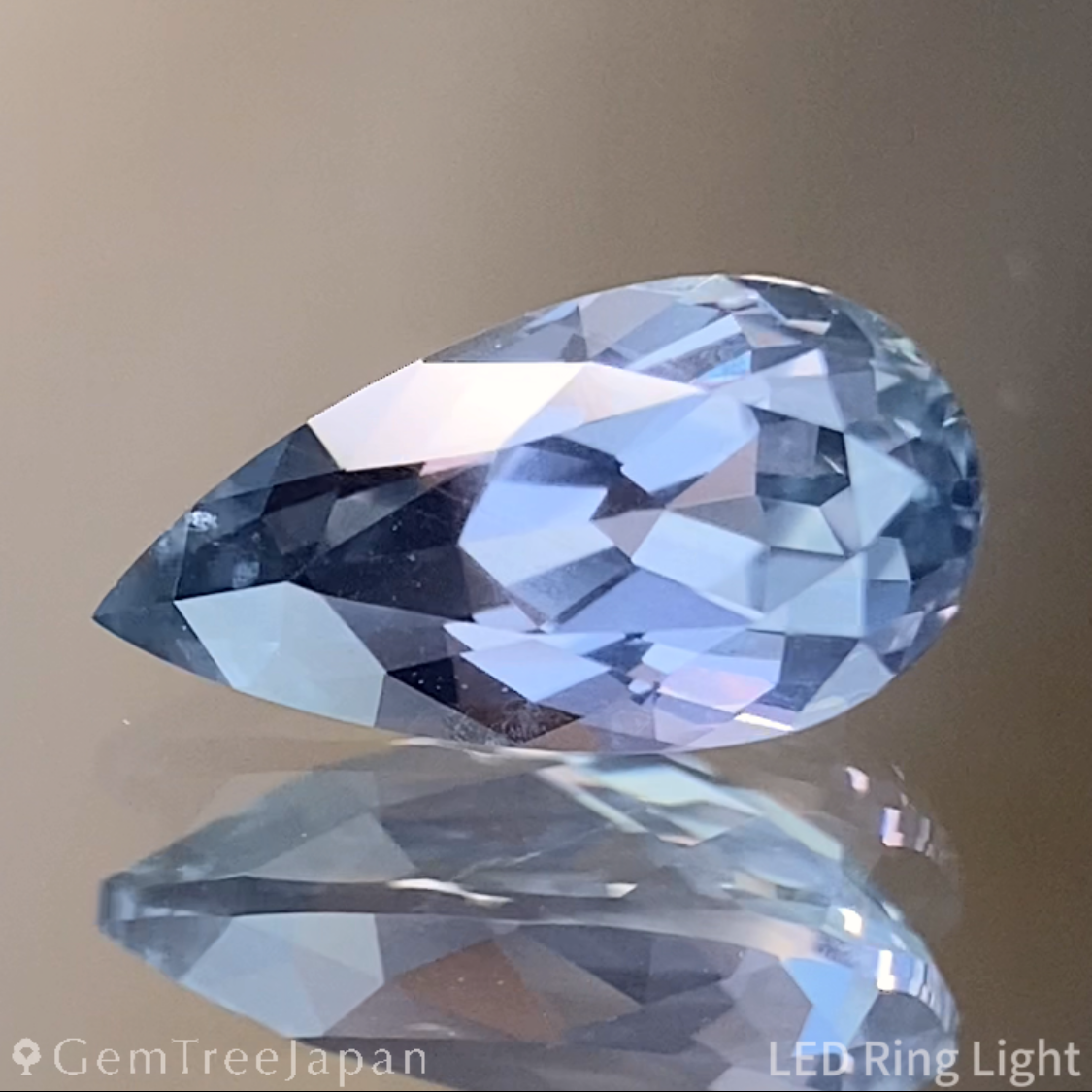 原石段階ではオレンジ色の皮膜状インクルージョンや層状の内包物が見られましたが、それらを丁寧に取り除きながら細長いペアシェイプに磨き上げました。しっかりとした厚みのあるプロポーションを活かし、両面にはフラワーカットを施して繊細な煌めきを引き出しています。