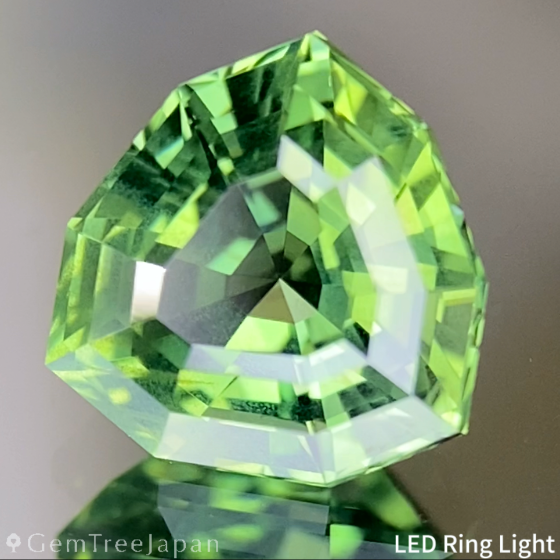 しっかりと厚みのある原石から、輪郭を細やかに整えたファンシートリリアントに仕立てた一石です。