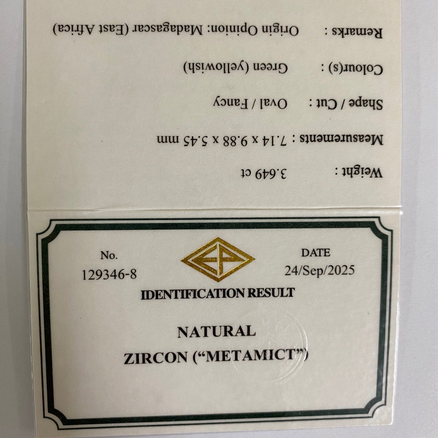 グリーンジルコンは渋みの強い色合いが多い中、こちらは明るさと鮮やかさを兼ね備えた稀少なマダガスカル産の結晶。