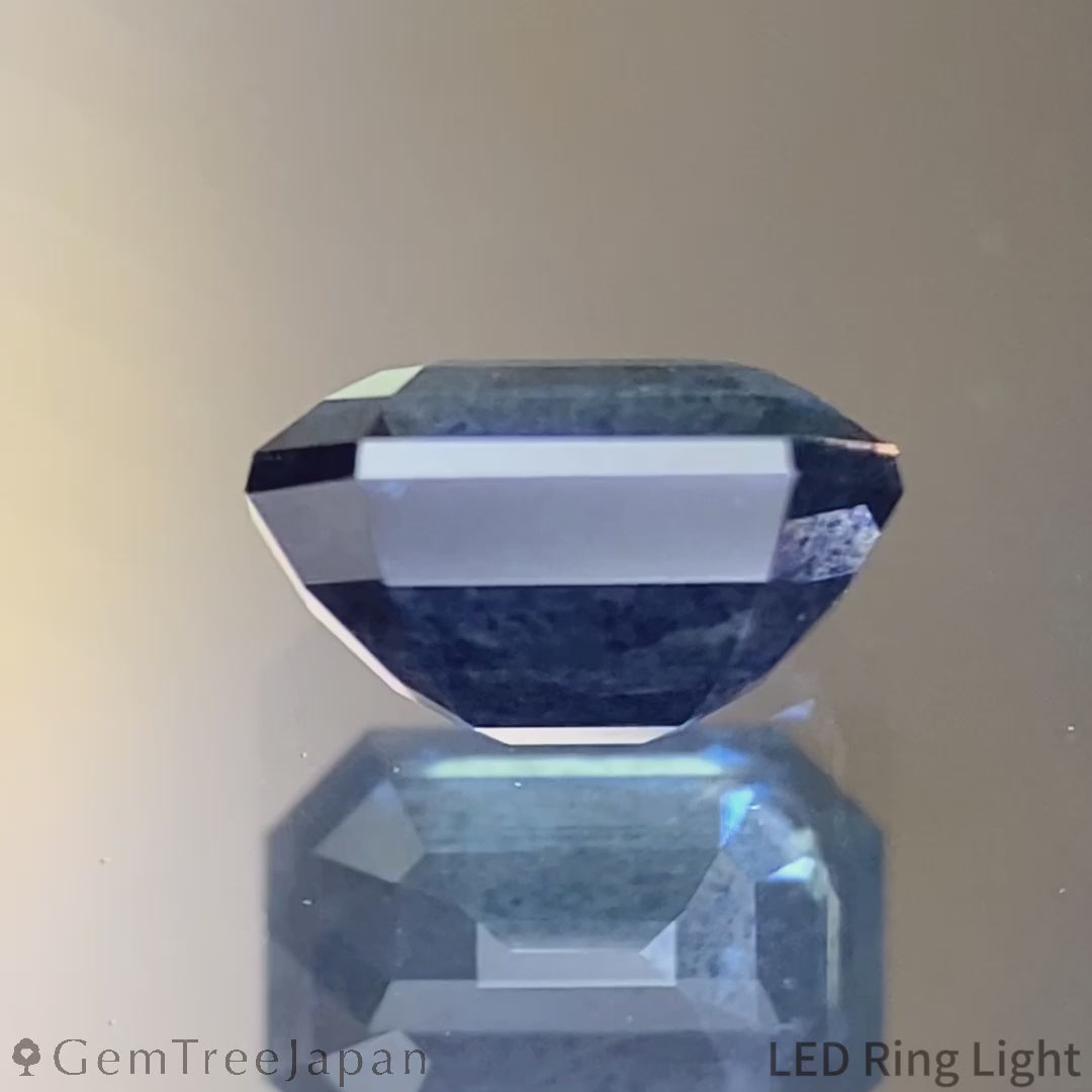 オクタゴンにステップカットが施され、端正なシェイプとシャープな煌めきが濃いブルーの力強さを際立たせています。