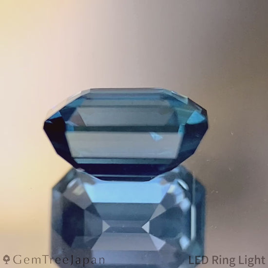 端正なオクタゴンにステップカットが施され、すっきりとしたシェイプと動きのある直線的なな煌めきが、クールな色味を引き立てつつ奥行きのある立体感も生み出しています。