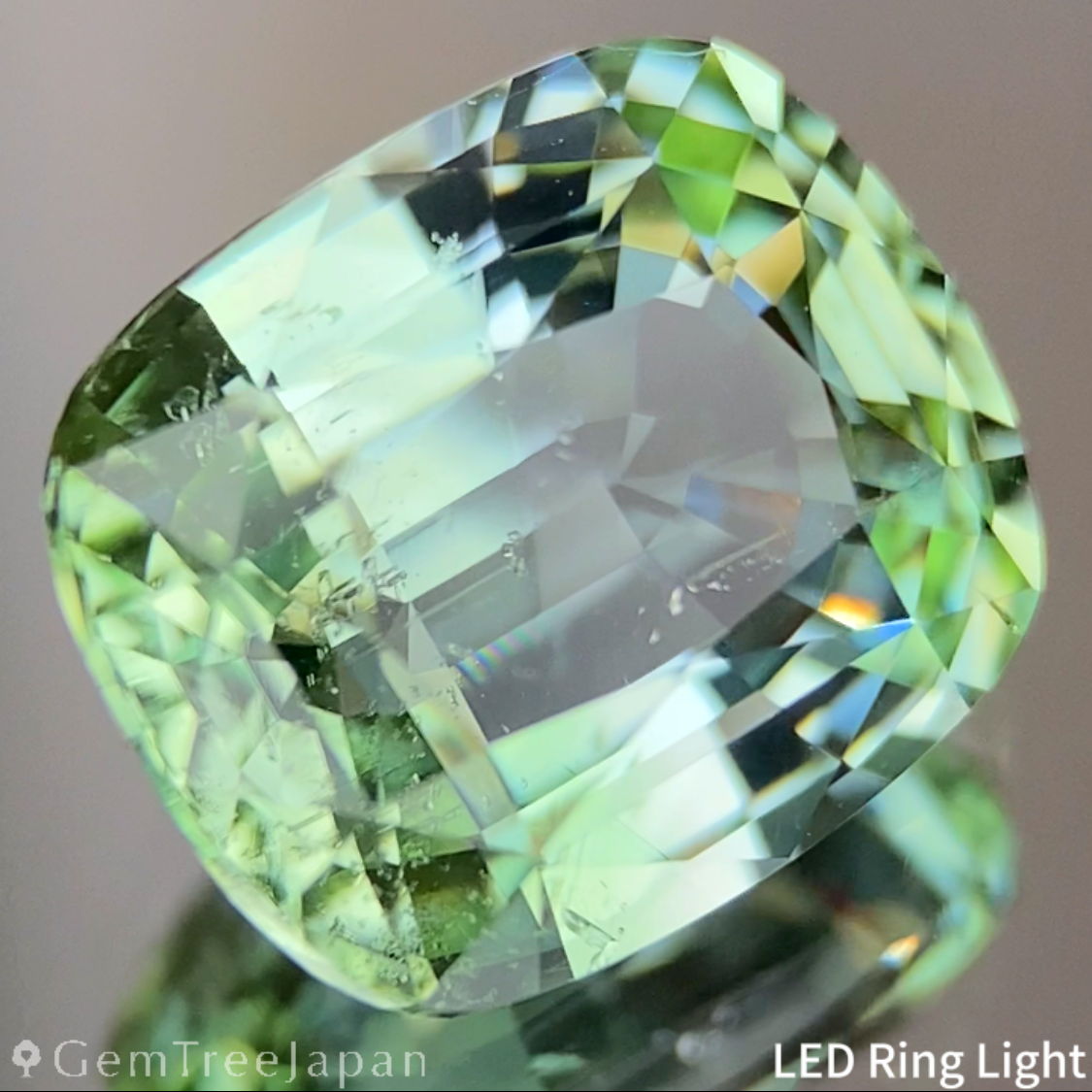 明るいグリーンのナイジェリア産トルマリンで、端正なクッションシェイプに仕上げた作品です。