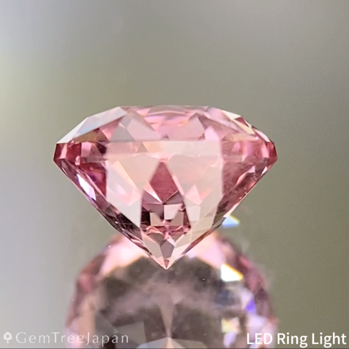 上品なライトオレンジーピンクのパイロープ/スペサルティン2種混合のマラヤガーネットで、輪郭を細かく縁取ったファンシーラウンドに仕上げた作品です。