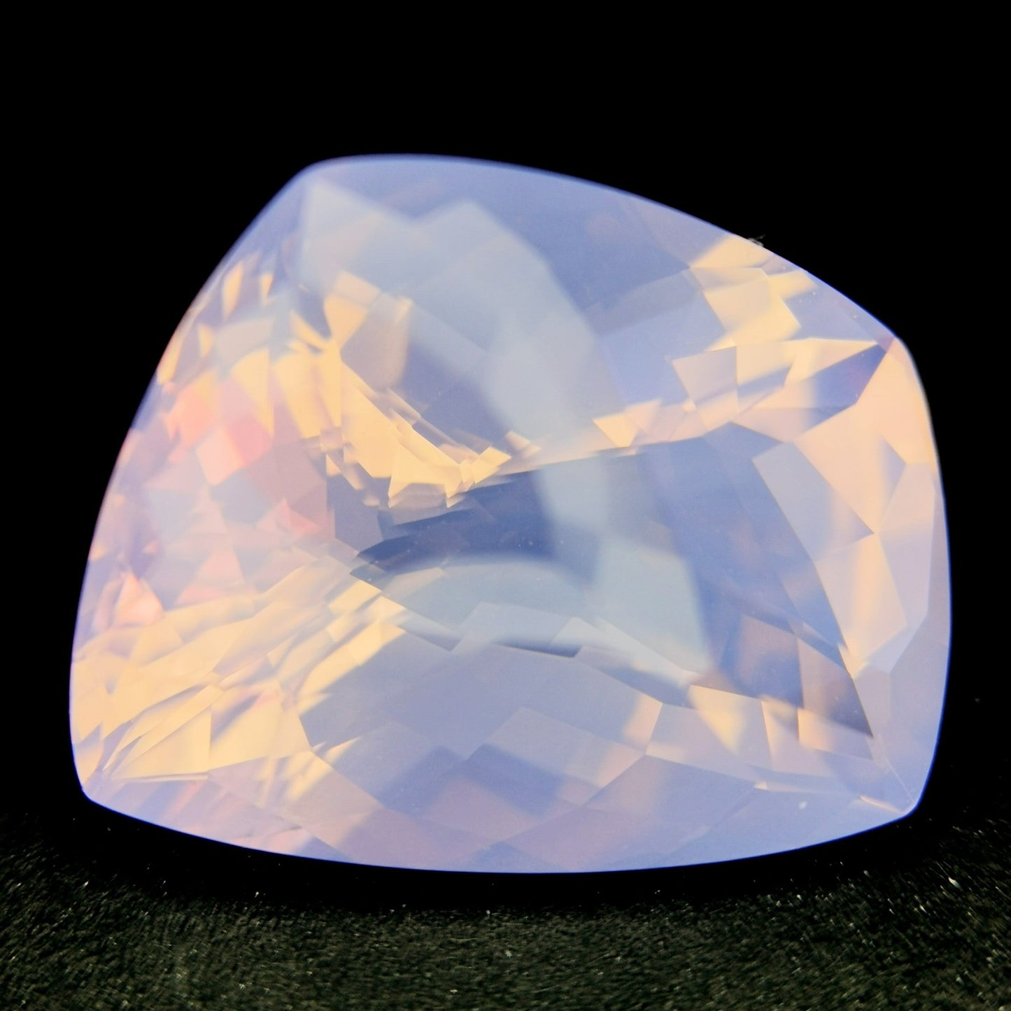 シルキーラベンダーカラーのミルキーアメジストで、原石にあわせて自由な感覚でカットされたクレイジーカットが施された逸品です。