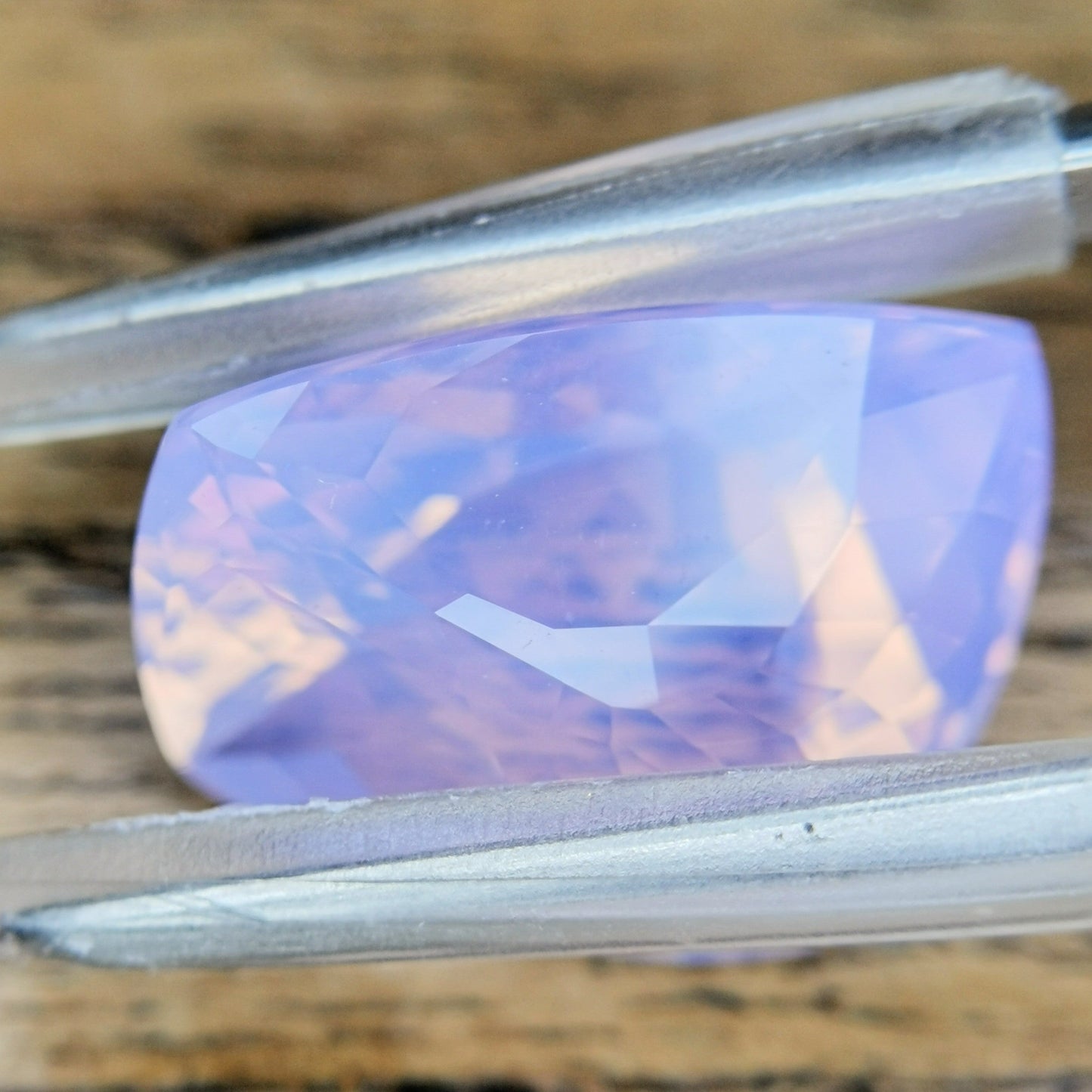 シルキーラベンダーの地色からピンクの煌めきや、シルキーな石ならではのネオン感あるオレンジの煌めきを放ちます。