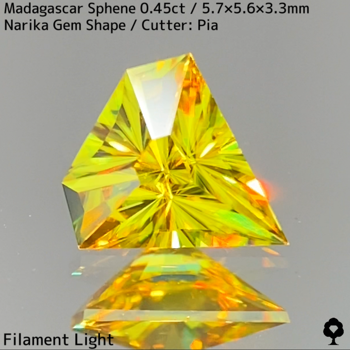柔らかい石種な分、非常に高い分散度を誇るスフェーンですが、抜群のカットと磨きによって煌めきが最大限に引き出されています。