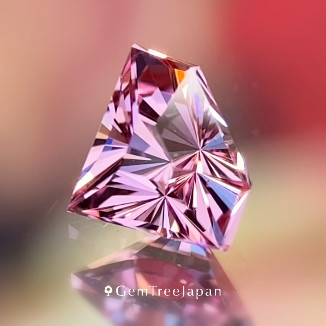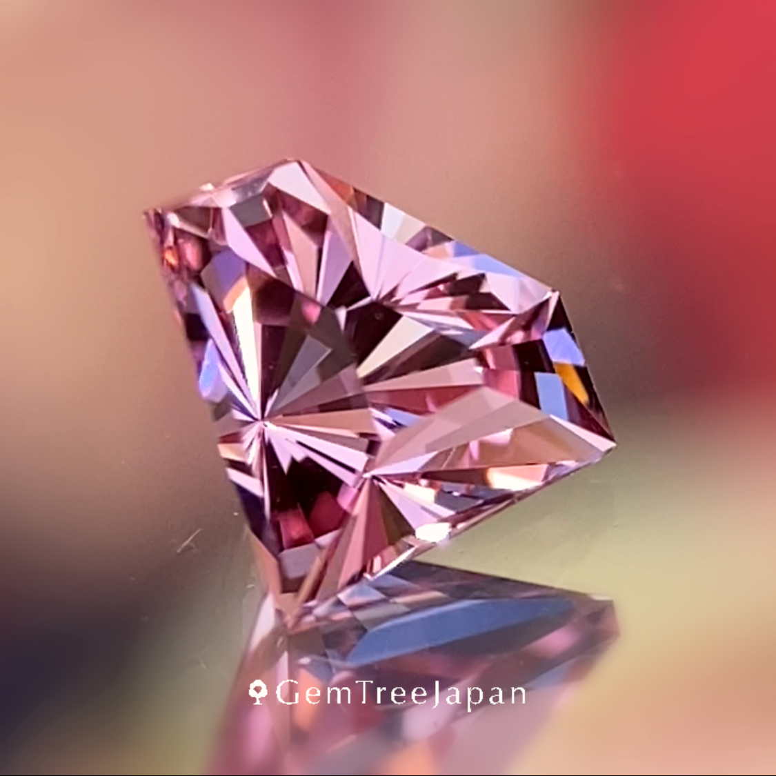 桜のような可愛らしく明るいピンクのベトナム・ルックイェン産のピンクスピネルで、大人気の宝石形シェイプにタイ語で時計を意味するナリカーカットを施し、パビリオン側はシンプルなファセットに仕上げた新カット作品です。