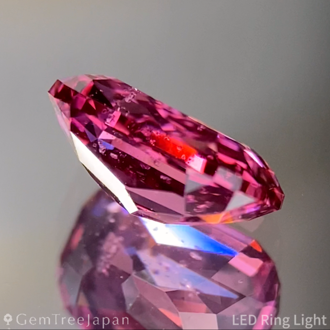 やや薄めのプロポーションのため、中央にはわずかに抜け感があるものの、光の当たり方によって鮮やかなテリとカラフルなファイアーが表れ、表情豊かな輝きを楽しめます。