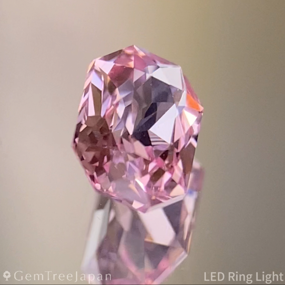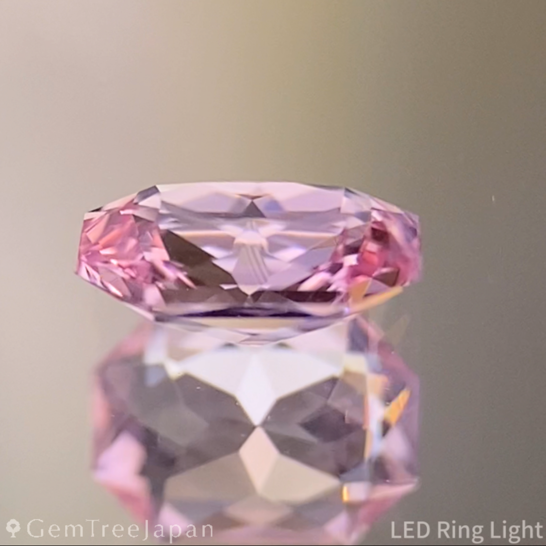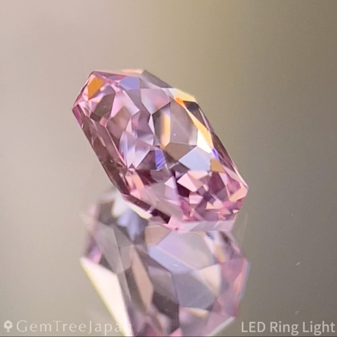 オレンジとピンクが混ざり合う繊細なパパラチァカラーの煌めきを放ち、地色にはうっすらとラベンダー感もあり、ピンク寄りでギリギリパパラチァの淡く麗しいカラーが可愛いです。