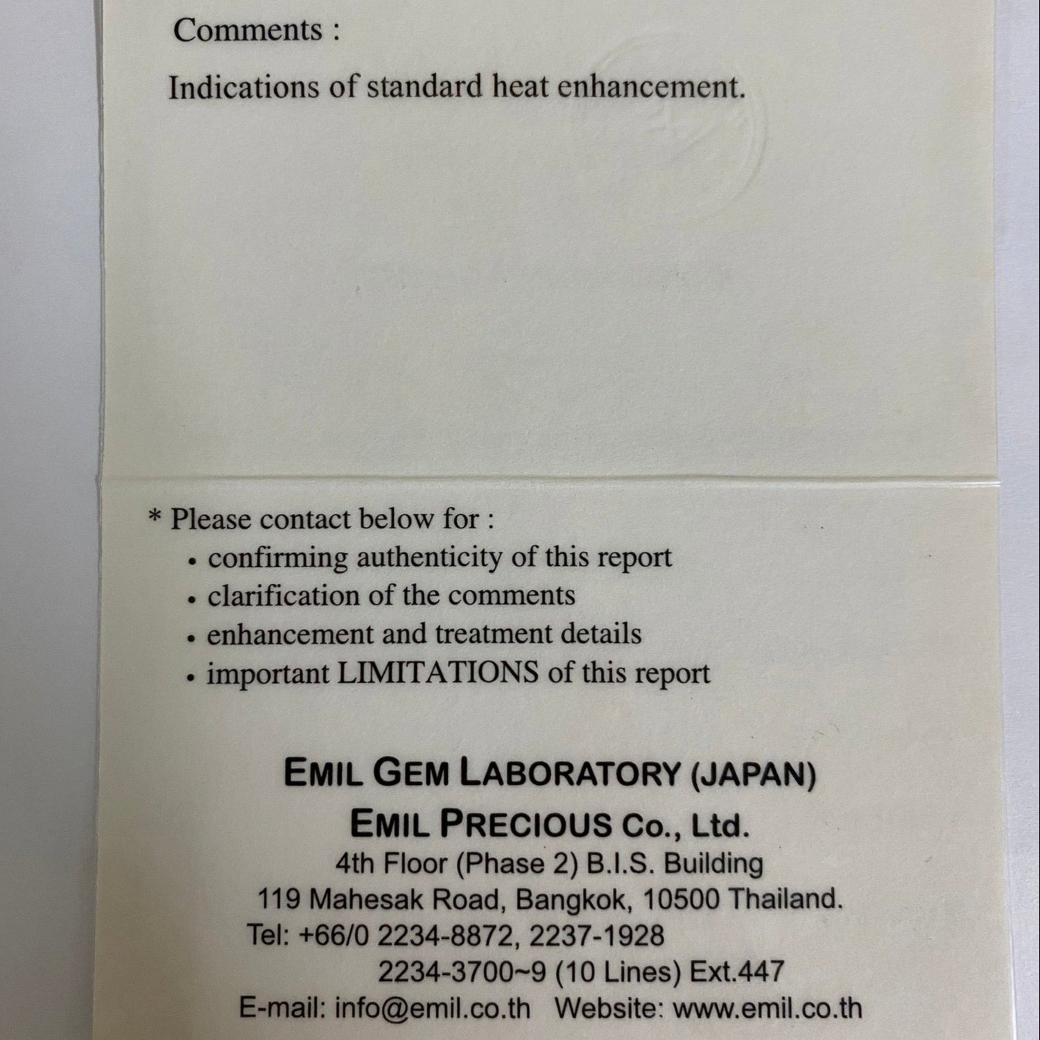 パビリオン側をタイ語で時計を意味するナリカーカットに仕上げ、中央からシャープな煌めきを放ちながら、バイカラーのブルーを反対側にも飛ばして、ブルーでニアカラーレスを挟みました。