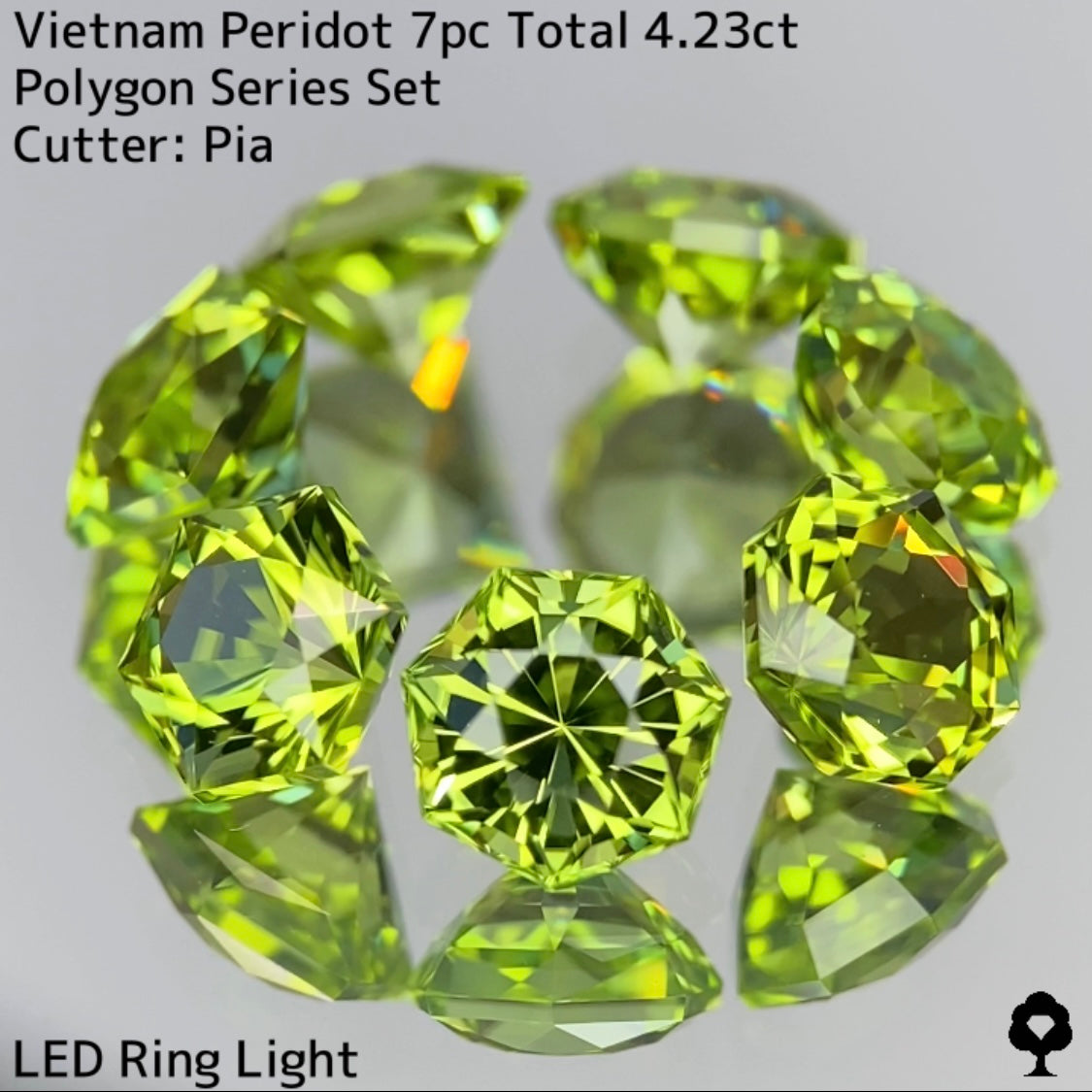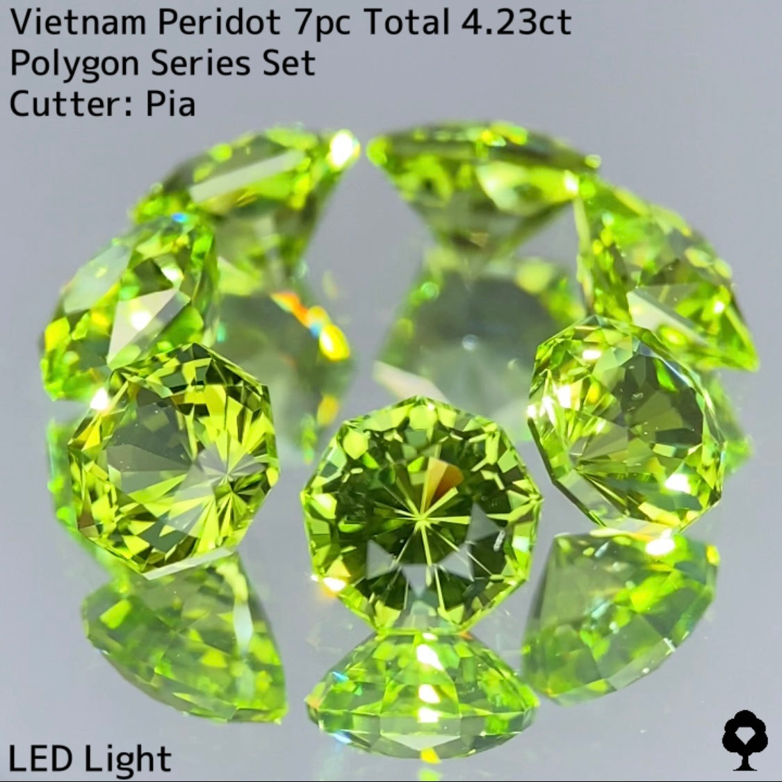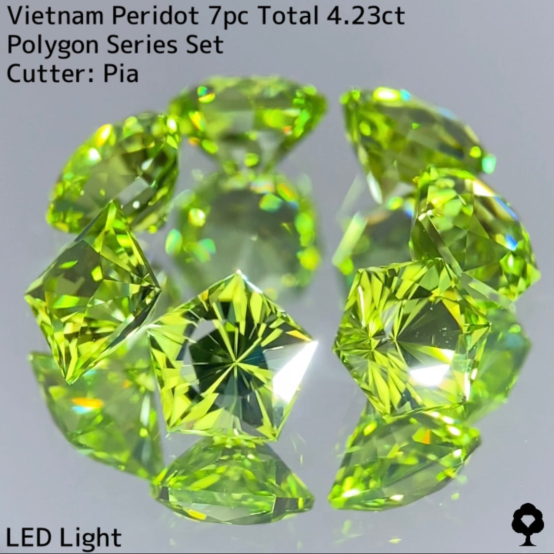 ベトナム産らしい明るく華やかなイエローイッシュグリーンが美しいペリドットの、大人気多角形7個セットです。