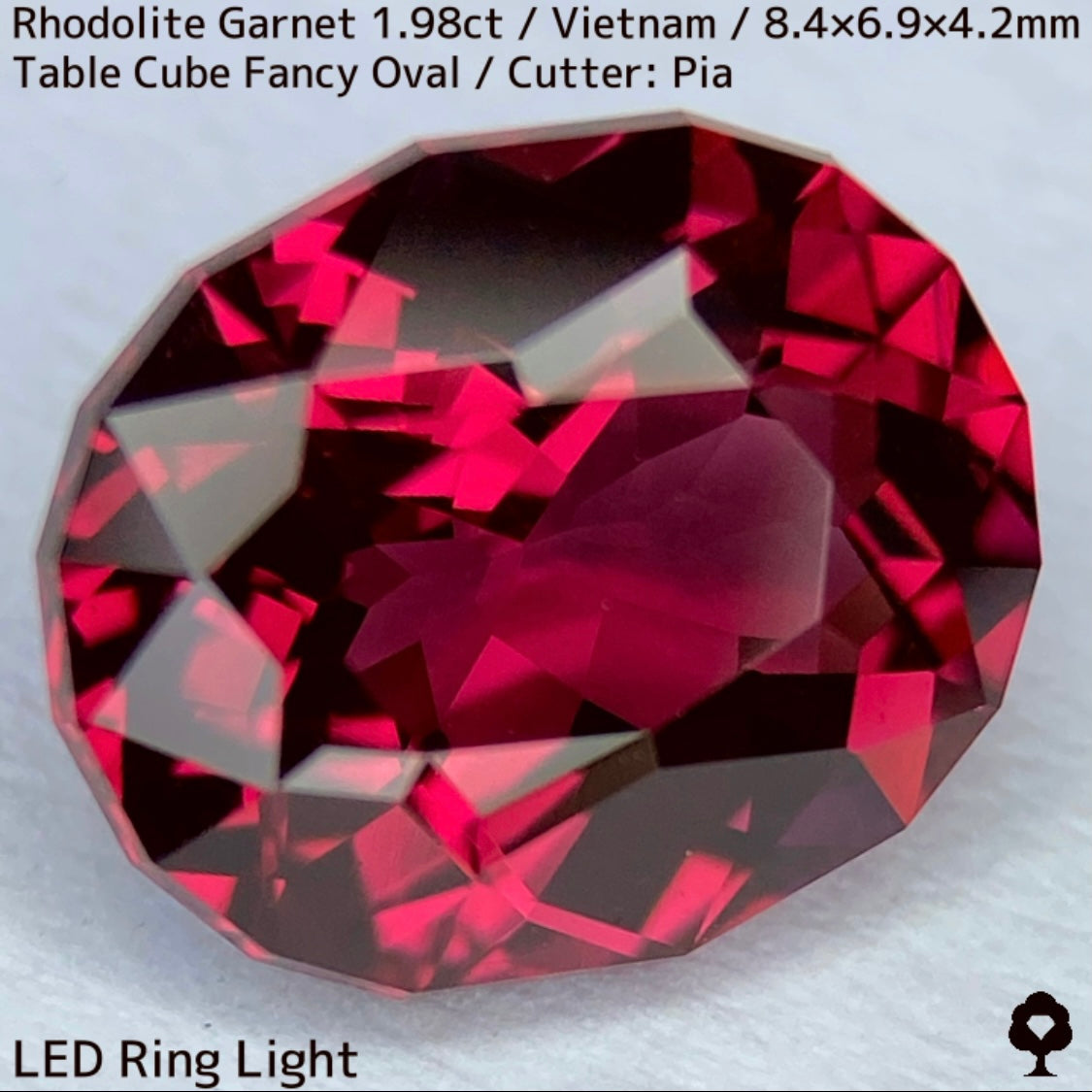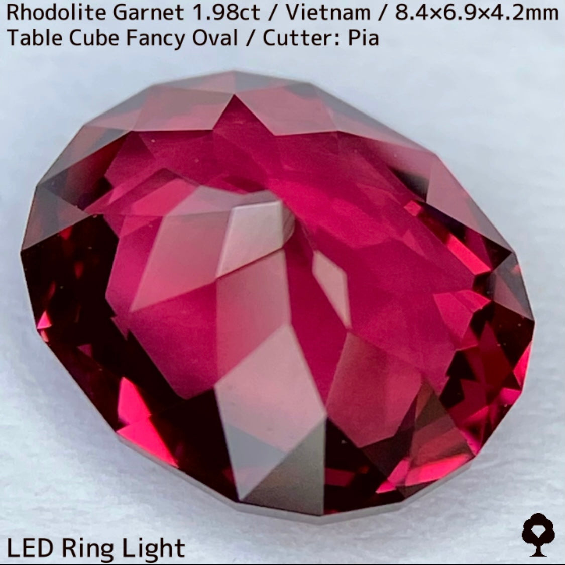 2ctに迫るボリュームの深みのある地色から、ファンシーオーバルのフラワーカットによる細やかな煌めきが溢れる圧巻の美しさです。