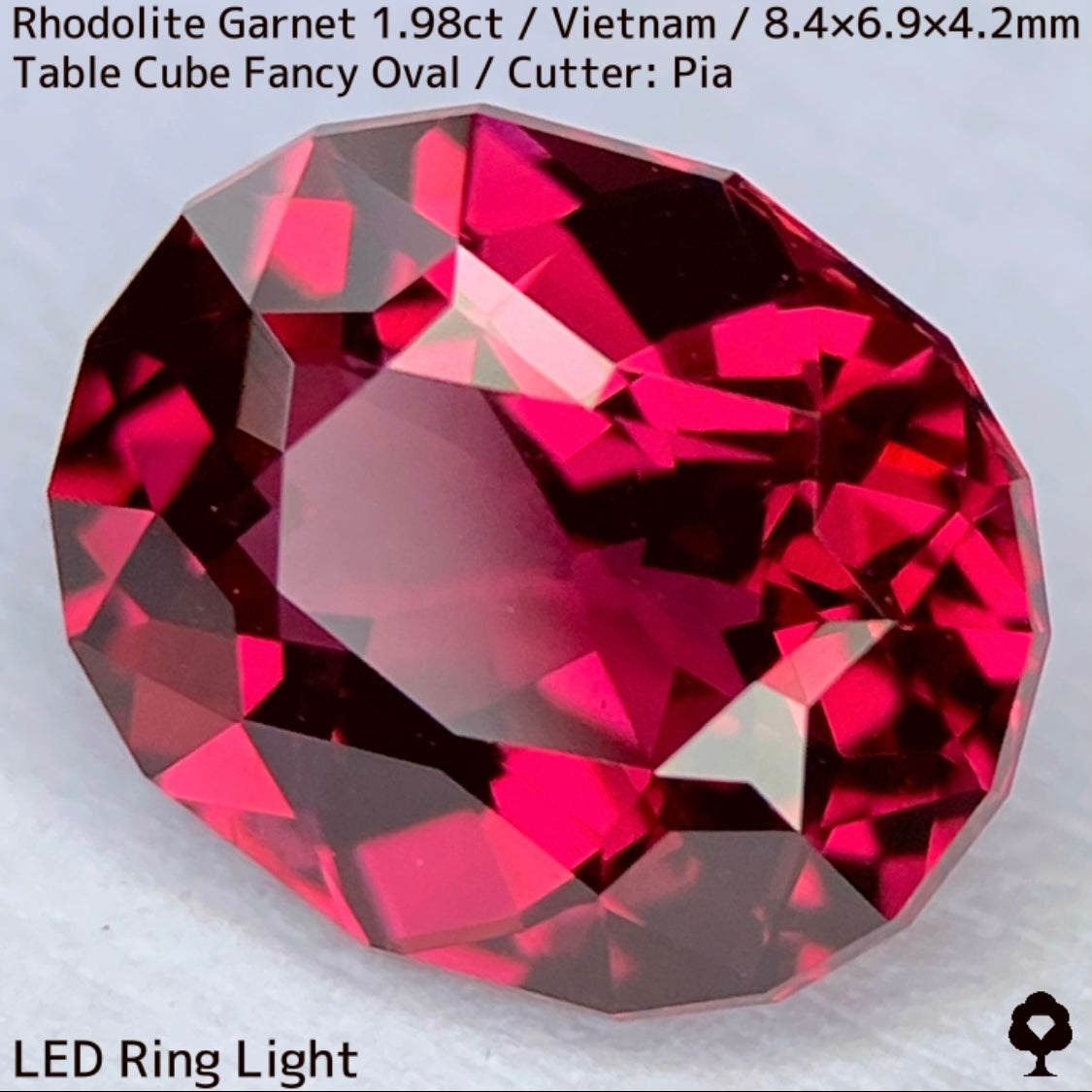 ベトナム北部産のレッド・オレンジ・ピンク・パープルが含まれる抜群の彩度と透明度と美結晶の一級品質のロードライトガーネットです。