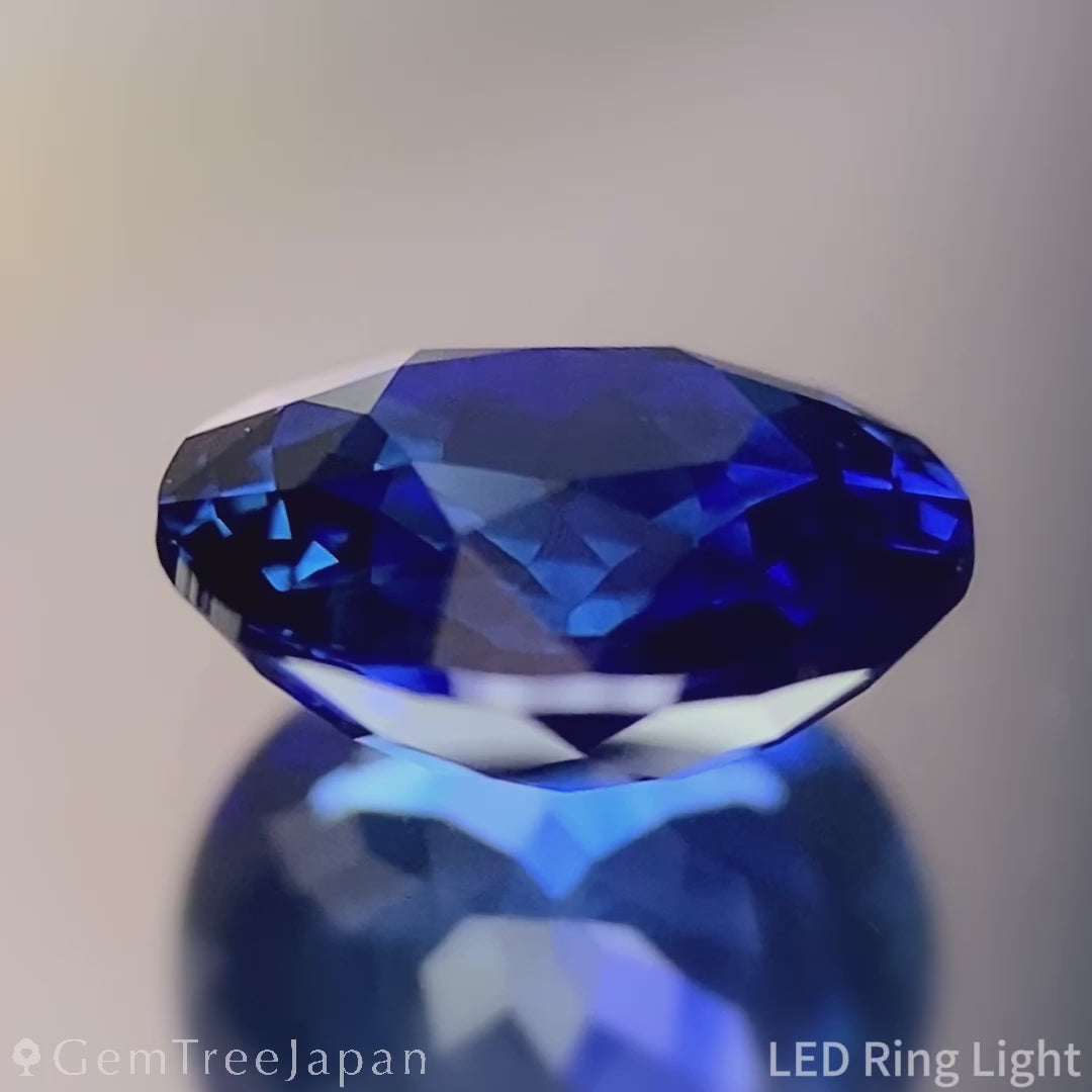 深みのあるロイヤルブルーに、わずかに明るいブルーが差し込み、濃淡が織りなす美しい表情を見せるビルマ産ロイヤルブルーサファイア。