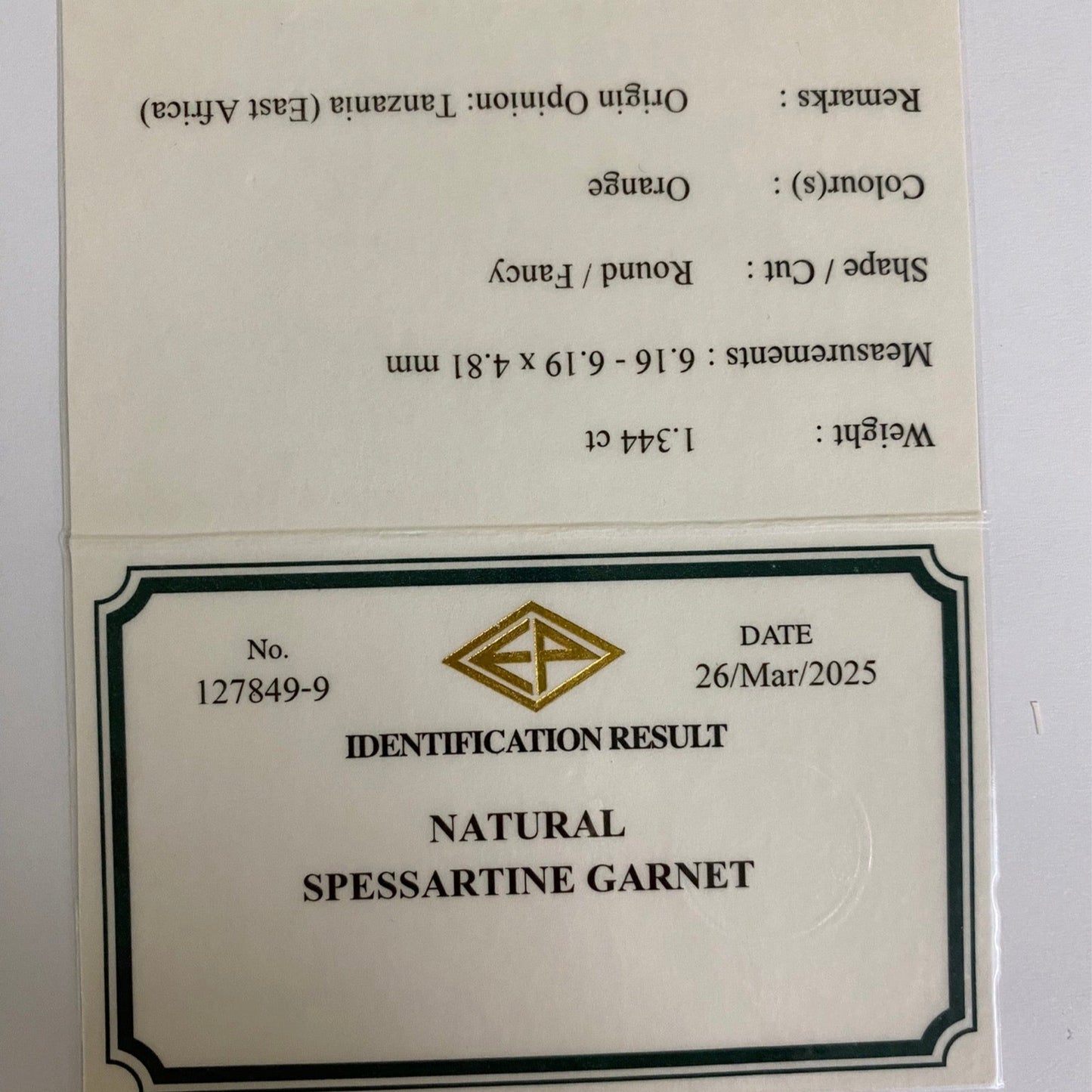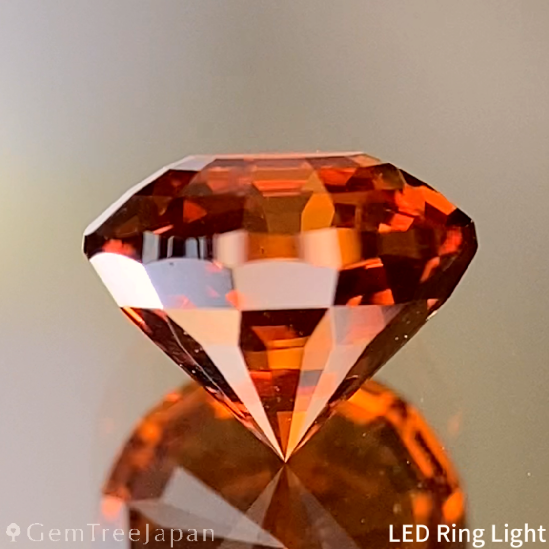 濃厚なオレンジの地色から非常に彩度の高いオレンジの煌めきを放つタンザニア産のスペサタイトガーネットで、ラウンドシェイプのパビリオン側にタイ語で時計を意味するナリカーカットを、クラウン側をステップカットに仕上げた新カット作品です。