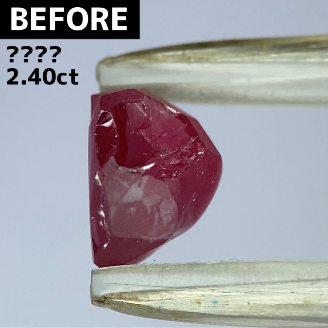 茜色や真紅などの色の表現が合いそうな複雑で妖艶さも感じるベトナム産らしい華やかさもある超美色で、自然光ではオレンジが引き出され、パビリオン側から見るとパープルが強く感じたりと、奥深くに多色性を感じます。