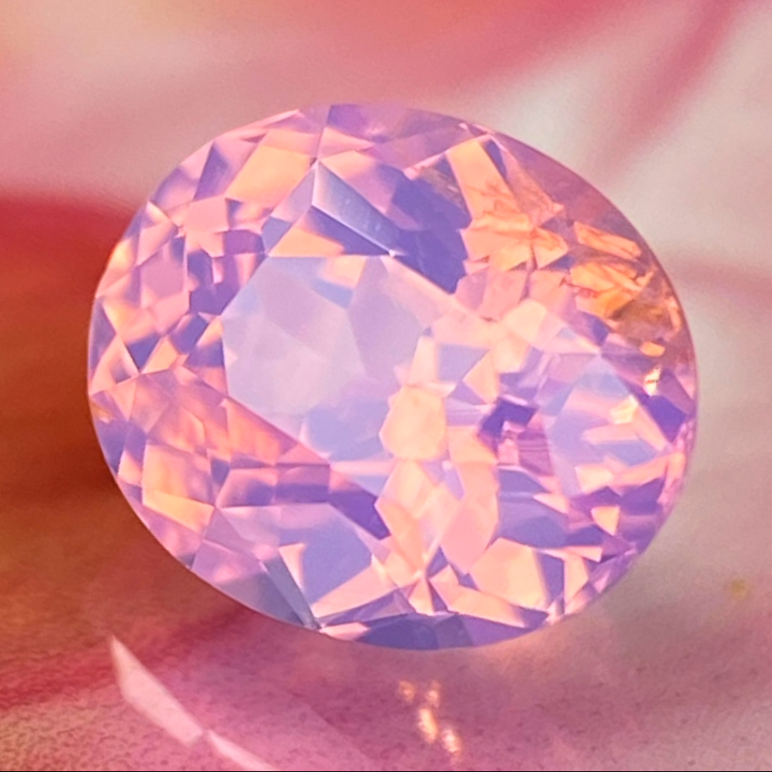 パパラチァはサンスクリット語で蓮の花の色を意味し、サファイアの中でも特異な存在かつ人気の高いカラーで、蓮の花のようなピンクとオレンジが混ざり合った美しい色合いをパパラチァサファイアと呼びます。