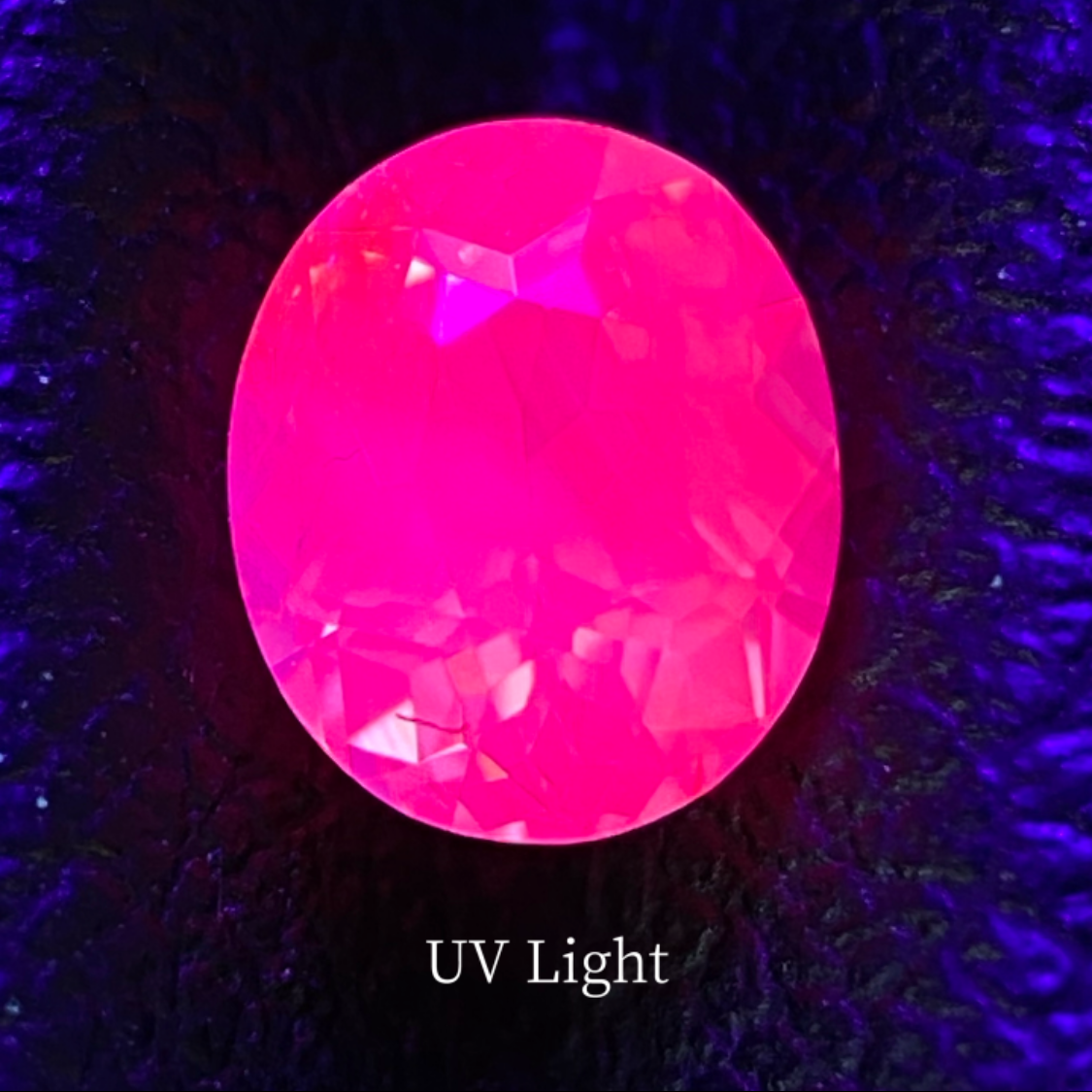 透明度抜群の美結晶で、パビリオン側に1箇所オレンジの成分を伴った内包物がありますが、正面から見た時に写真でもそうですし特に肉眼では全く存在が気にならないレベルです。