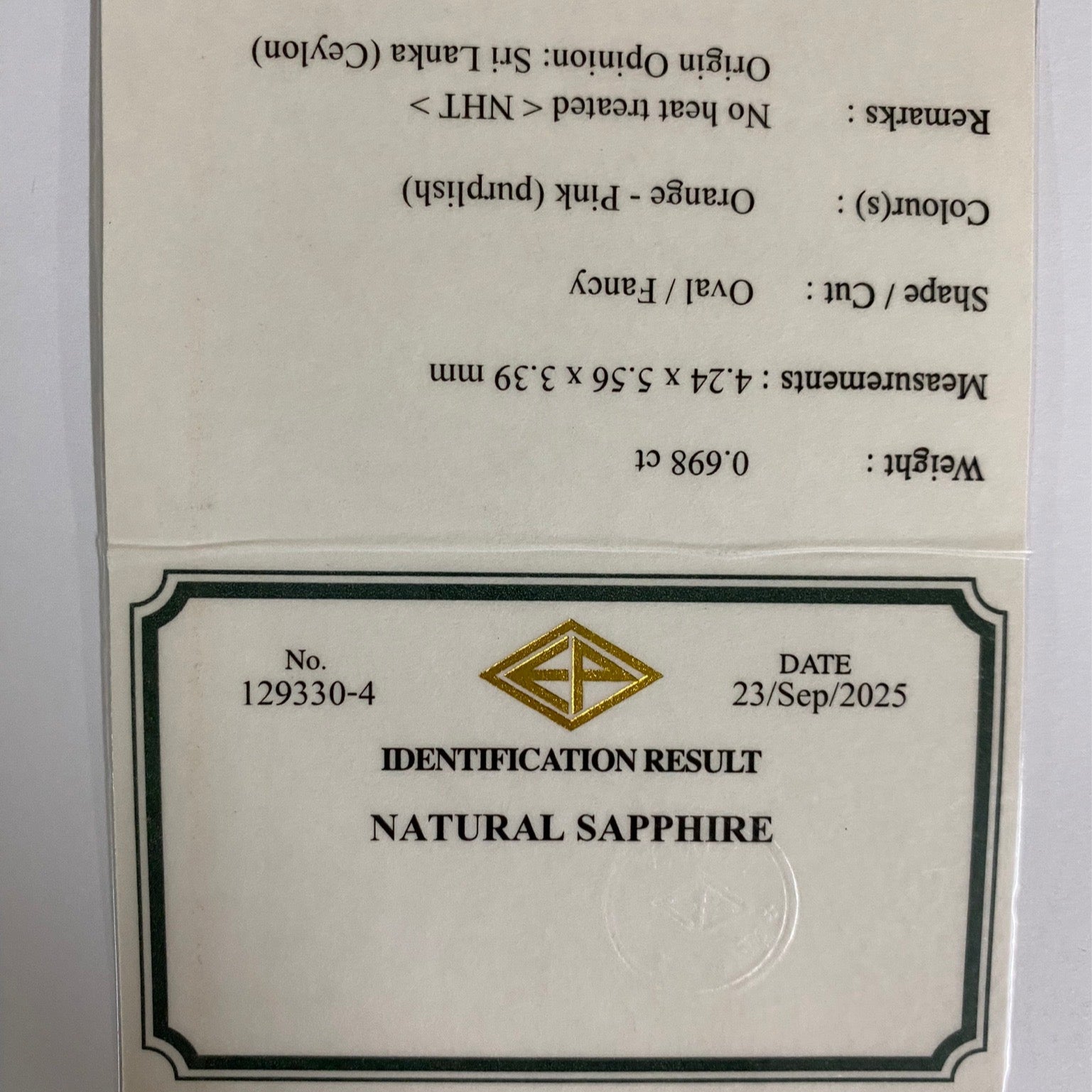 Un-Heat Padparadscha Sapphire 0.698ct / Sri Lanka