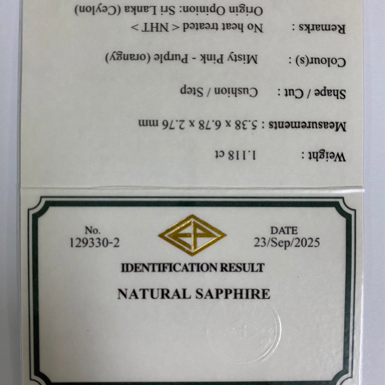 Un-Heat Padparadscha Sapphire 1.118ct / Sri Lanka