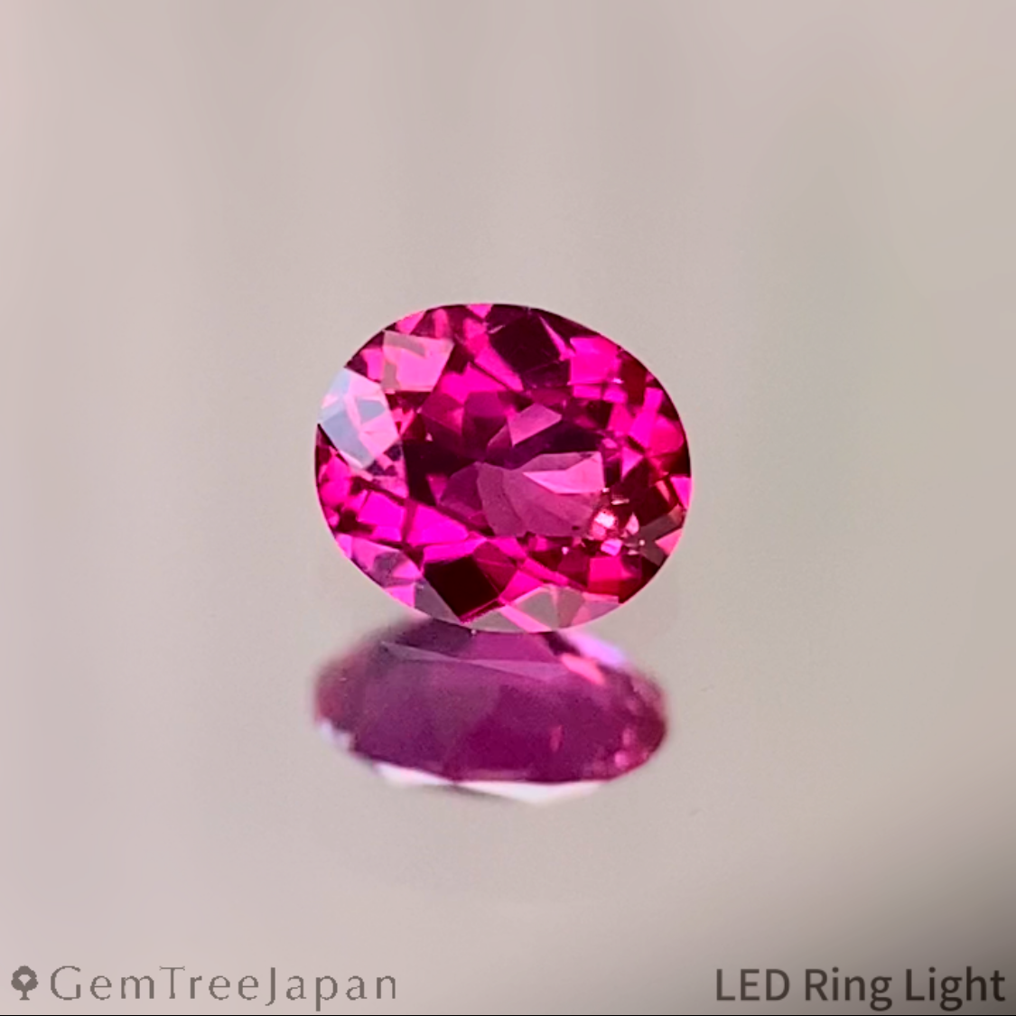 端正なオーバルにフラワーカットが施され、弾けるような輝きが作品全体から溢れ、レッドやパープルが絶妙にミックスされて煌きます。