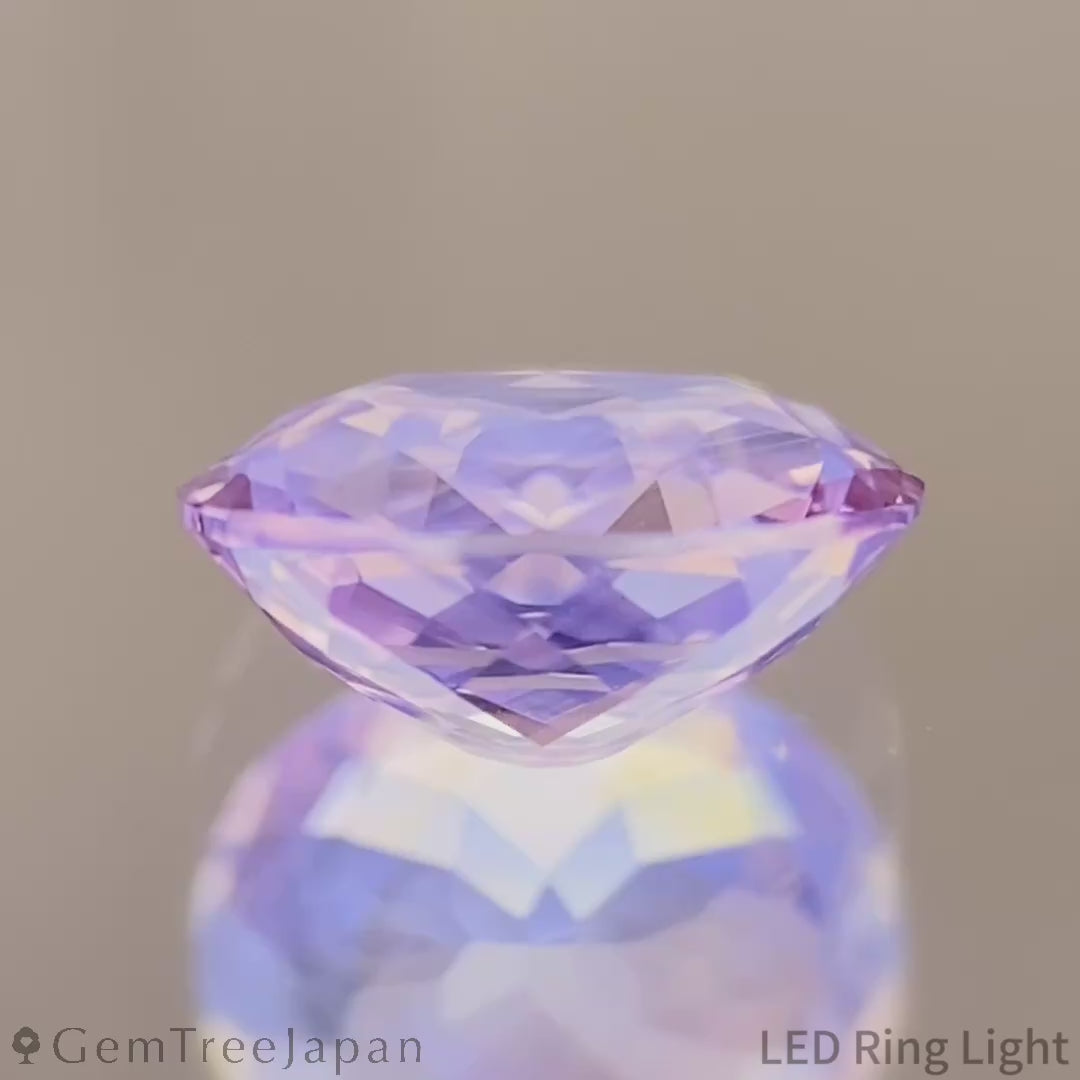 柔らかいピンキッシュパープルに、オレンジ色のシルクインクルージョンやカラーバンドが入ることで生まれる、色の変化がペールカラーの万華鏡のようです。