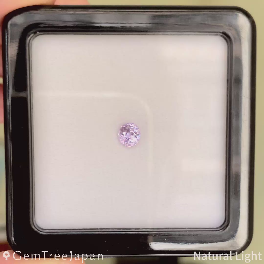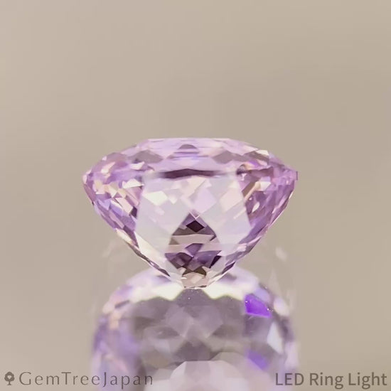 青みのある淡いパープルに、角度によって淡いピンクが見られ、シルクインクルージョンの影響により時折ごく淡いオレンジが現れます。
