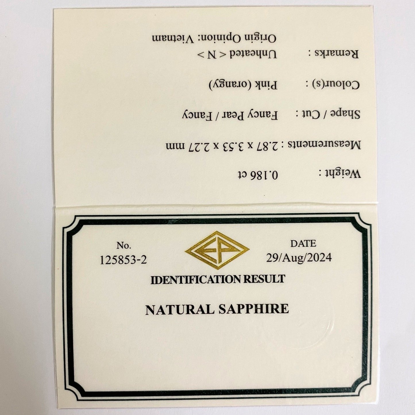 Un-Heat Silky Padparadscha Sapphire 0.186ct / Vietnam