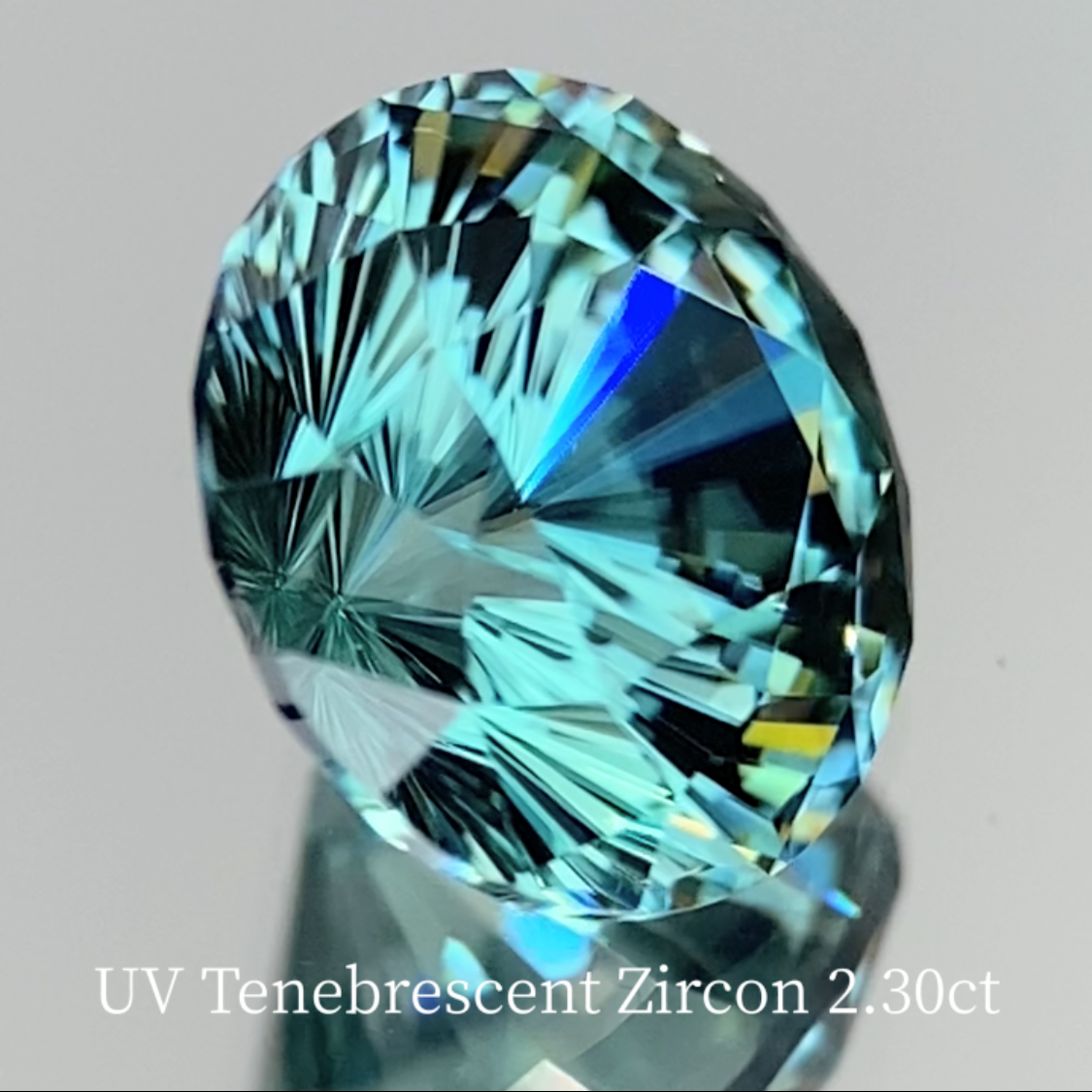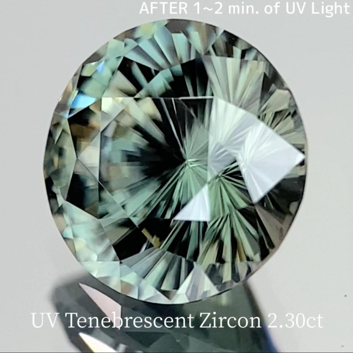 正統派ブルージルコンから少しだけグリーンにハズレた感じが良く、変色効果後のカーキの色合いも奥に潜んでいて面白い一石なので、ぜひ肉眼でしか感じられない微妙なニュアンスをお楽しみください。