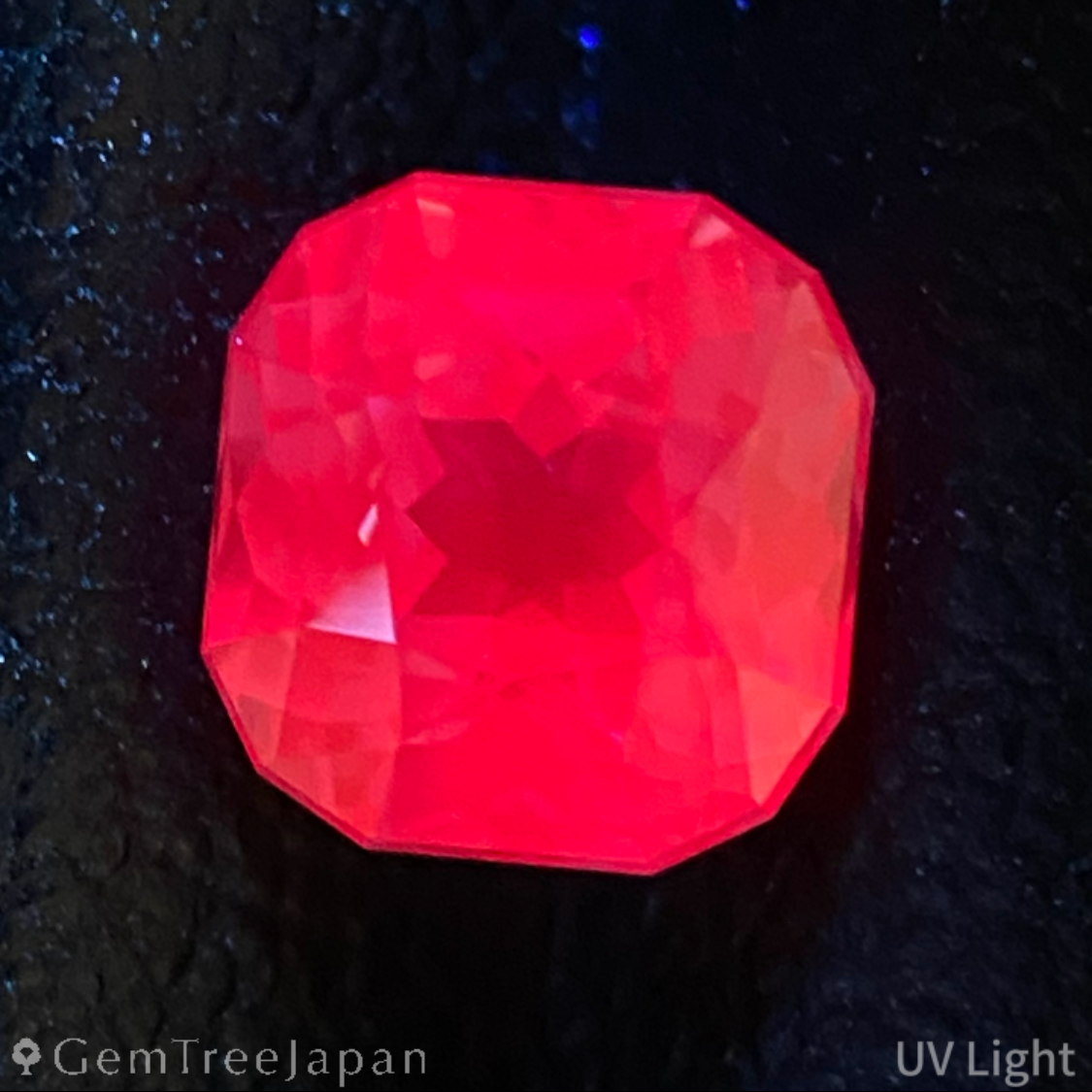 四隅を二段に縁取ったエレガントカットにフラワーカットが施され、厚みのあるプロポーションも相まって湧き上がるような奥行きのある輝きが眩いほどに煌めきます。